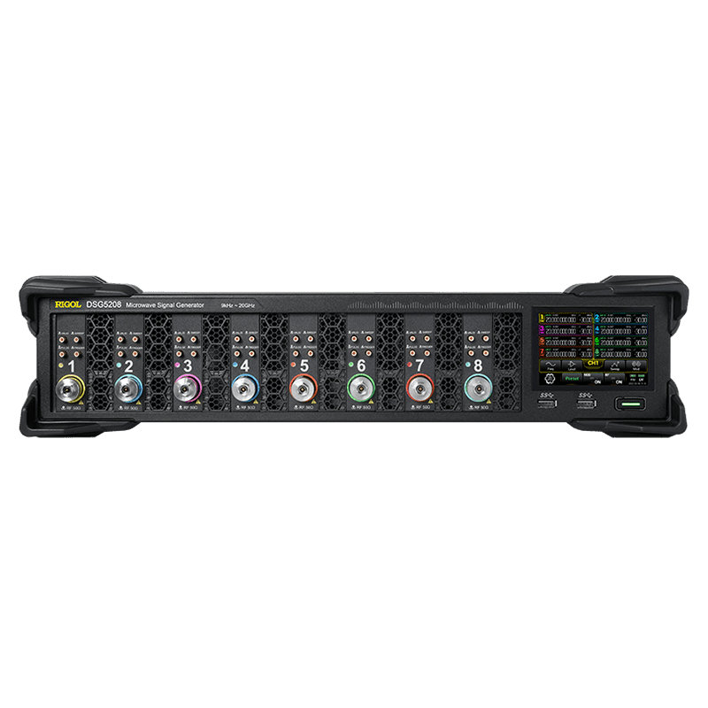 DSG5000 시리즈 RF 신호 발생기의 주파수 범위는 9 kHz ~ 12 GHz 이며, 2~8개의 독립적인 채널을 지원합니다.