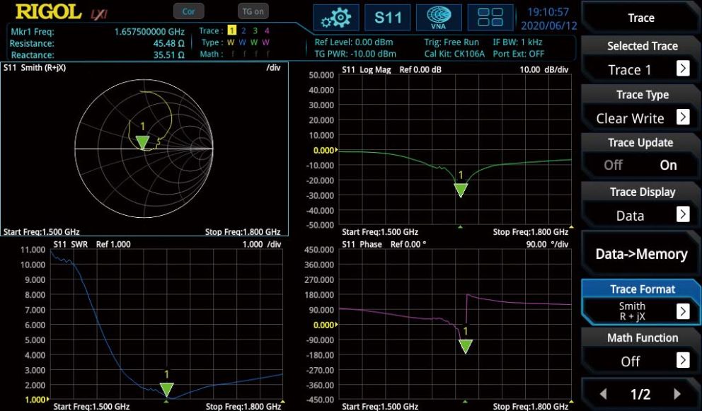 스미스 차트, 폴라 차트 등 다양한 표현 방식으로 매칭 상태를 직관적으로 분석할 수 있어 RF 부품 평가와 간단한 네트워크 검증 작업에 유용합니다.