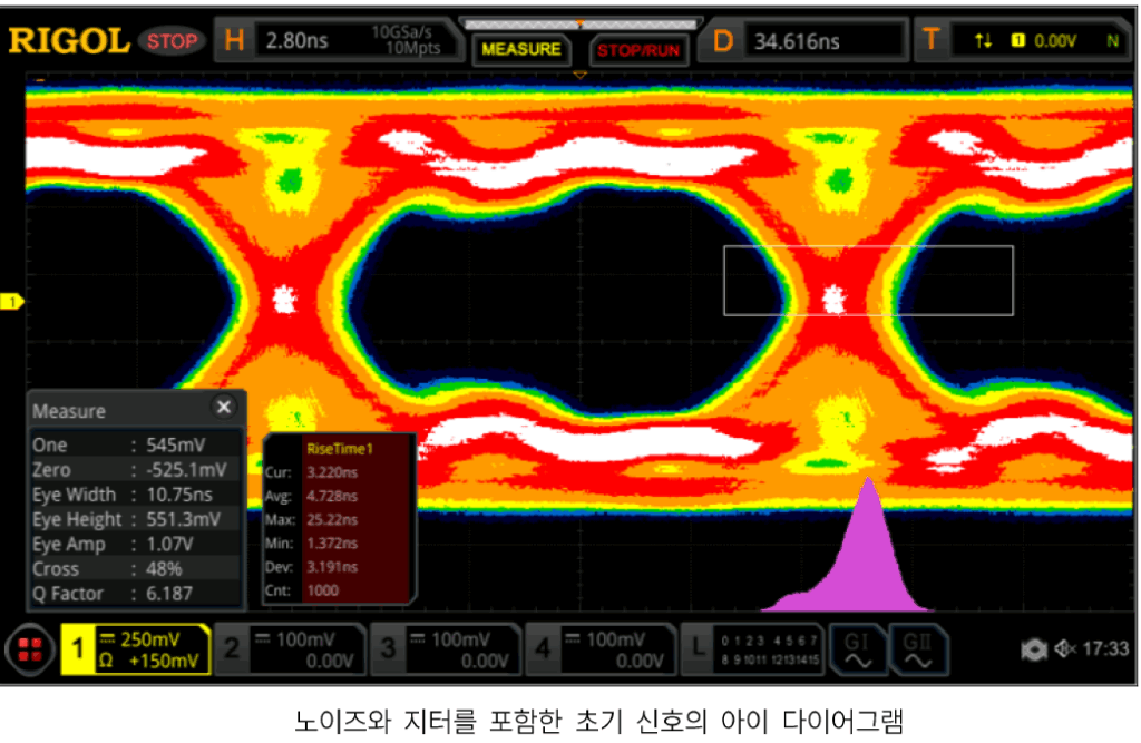 - 눈 높이(Eye Height): 수직 열림 정도로, 노이즈 마진과 관련이 있으며 높을수록 진폭 노이즈에 강합니다.