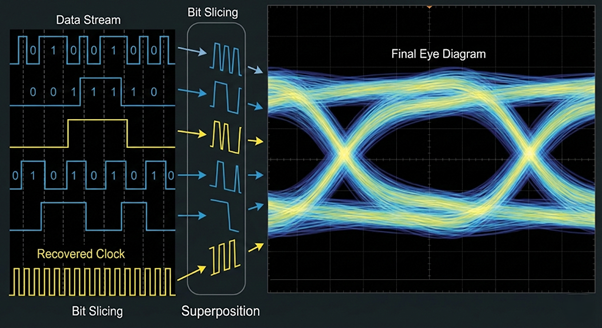 - 비트 중첩: 복구된 클럭을 기준으로 파형을 동일 위치에 겹쳐 쌓음